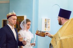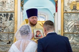 Батюшка также отметил, что в этот день Церковь воспоминает перенесение мощей святых князей Петра и Февронии, которые стали для всего мира образцом супружества, нелицемерной любви и самоотверженного служения ближнему. В этот благословенный день, осиянный светом святых Муромских чудотворцев, в Успенском храме настоятель совершил Таинство венчания супружеской пары – Сергия и Анны. Батюшка сердечно поздравил их и пожелал сохранить любовь и верность на многая и благая лета!