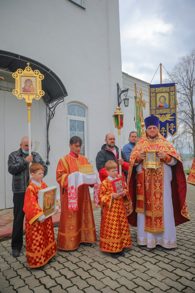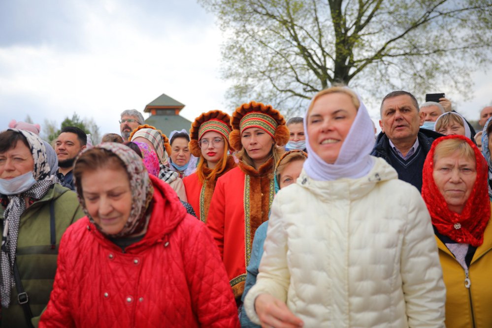 Во время Крестного хода, следовавшего вокруг храма, прихожане соборно со священством и Высокопреосвященнейшим Владыкой восславили Вокресшего Господа нашего Иисуса Христа и блаженную Матрону Себинскую Московскую – святого «воина Христова».