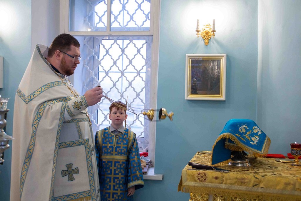 За Божественной литургией на сугубой ектении были возглашены особые прошения об Отечестве нашем и защитниках его. По заамвонной молитве состоялось славление Божией Матери.