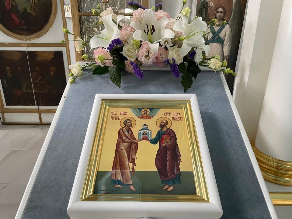 12 июля 2023 года, в день памяти славных и всехвальных первоверховных апостолов Петра и Павла, в нашем храме была совершена Божественная литургия. По заамвонной молитве состоялось славление святым апостолам.