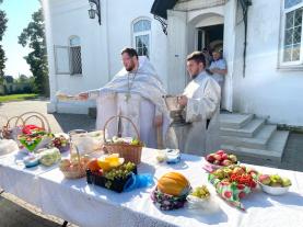 По заамвонной молитве были освящены плоды нового урожая.
