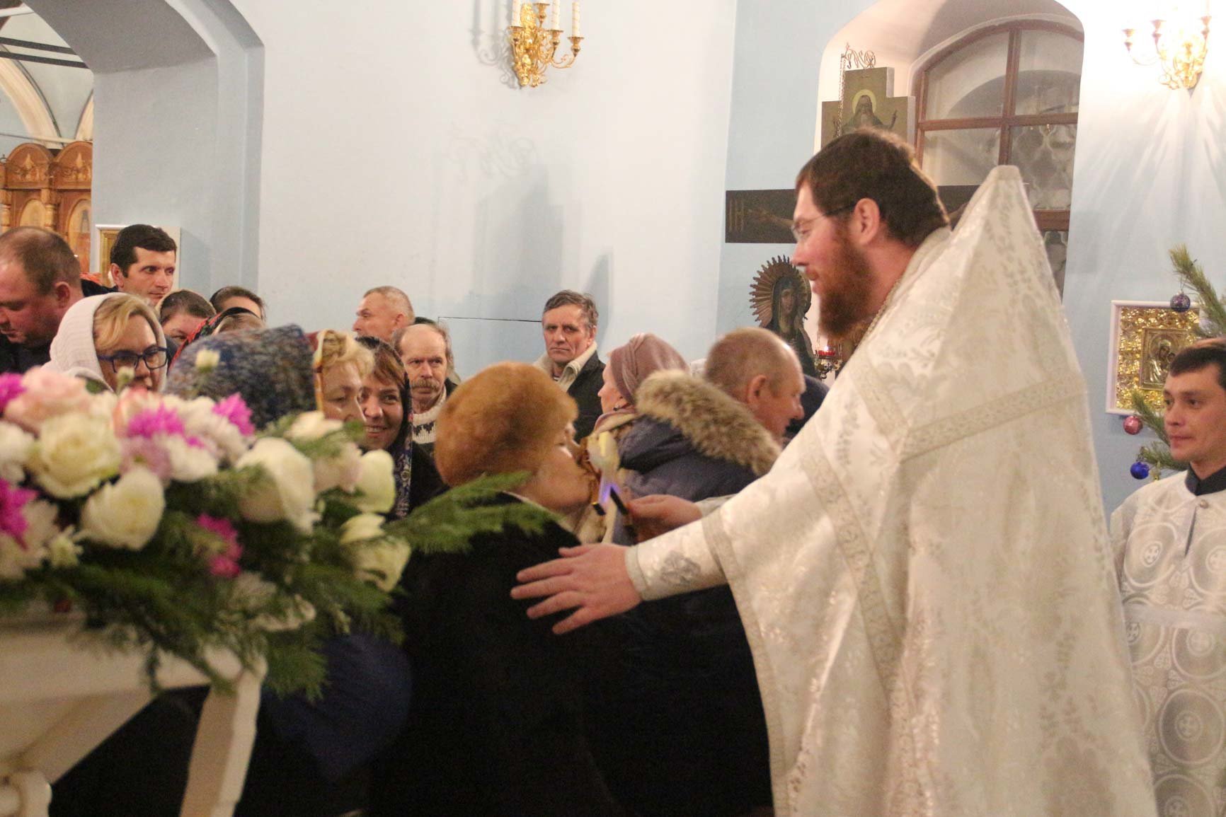 В Свято-Успенском храме села Себино на ночной Божественной Литургии множество паломников, многие из которых были с детьми разного возраста, соборно со священством восславили рожденного Христа, пришедшего в мир в образе человеческом, чтобы избавить «земнородных» от уз смертных и спасти души наши.