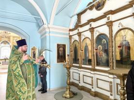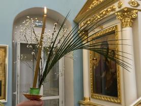 На утрене, после прочтения Евангелия, настоятель храма совершил освящение ваий(верб).